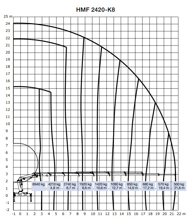 • На минимальном вылете 3,0 метров - 6940 кг.