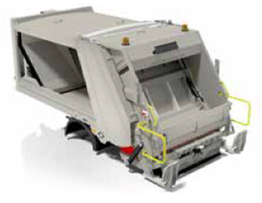 Выталкивающая плита имеет герметичные уплотнители для исключения попадания мусора в переднюю часть кузова. Специальная форма выталкивающей плиты позволяет легче опорожнять кузов.