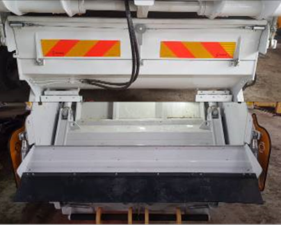 Откидной задний борт. При вывозе мусора в ручном режиме откидной задний борт существенно облегчает процесс погрузки мусора в бункер.
