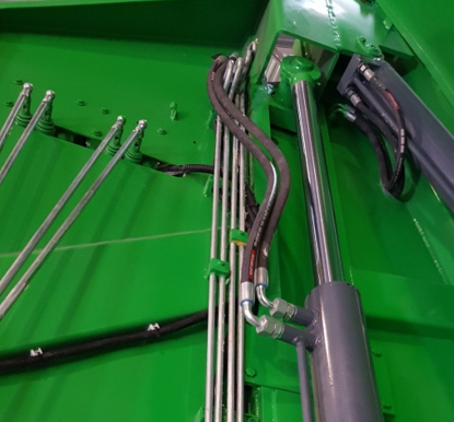 Для опорожнения кузова перемещается назад под воздействием телескопического цилиндра. Точное направление пластины обеспечивают направляющие.