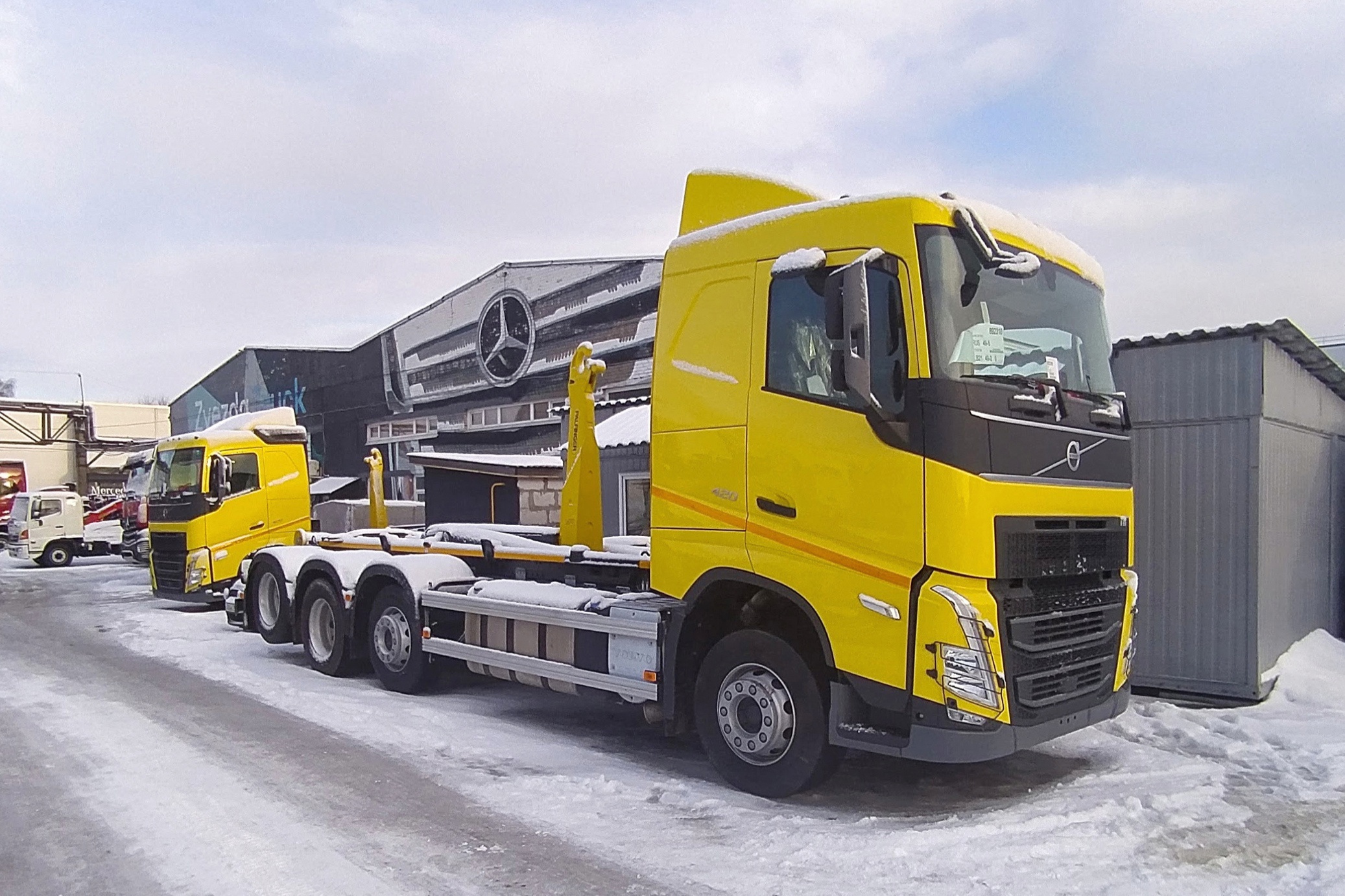 Застроили несколько Volvo FH модного желтого цвета ). Колесная формула формула 8х2, задний мост - подъемный. Установлены системы