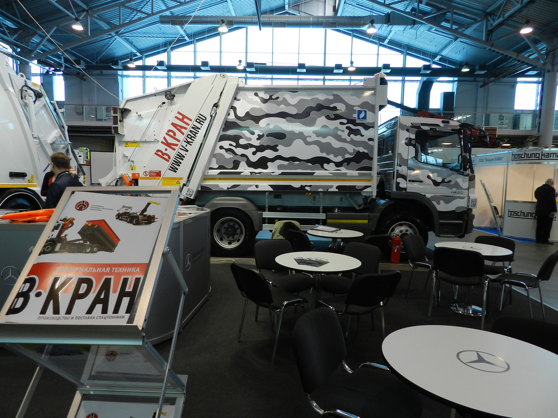 Компания "В-Кран" совместно с компанией "Звезда-Трак" поучаствовала в выставке "Экология большого города", походившей в Санкт-Петербурге с 19 по 24 марта. На стенде компании были представлены современные модели мусоровозов NTM и Coseco на шасси Mercedes-Benz.