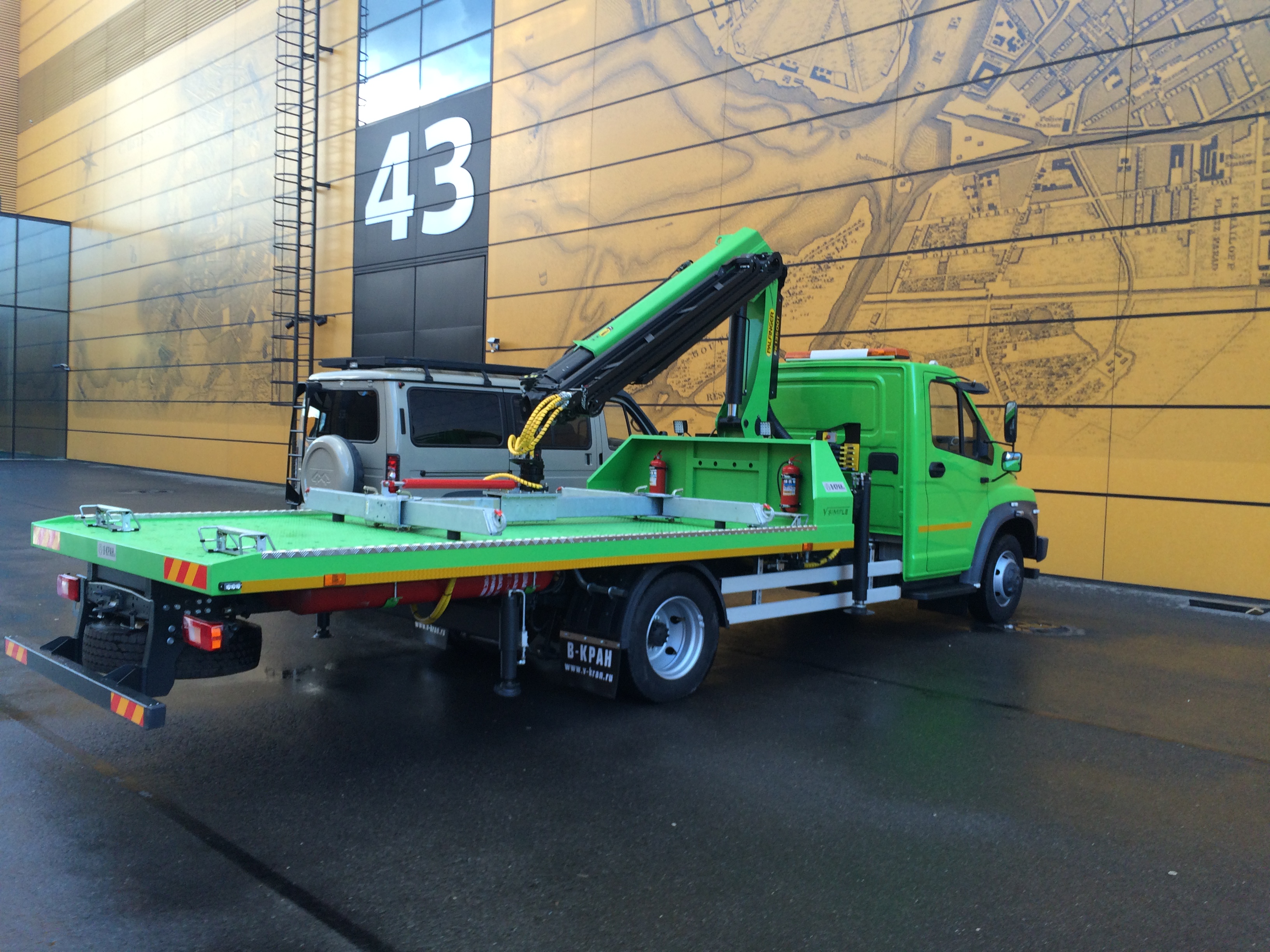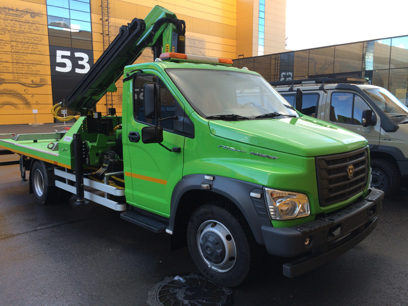 Представляем Вашему вниманию эвакуатор со стационарной платформой и КМУ, в состав которого входит шасси: ГАЗон Next С41R16 с новым газовым четырехтактным двигателем, который работает на компримированном природном газе!