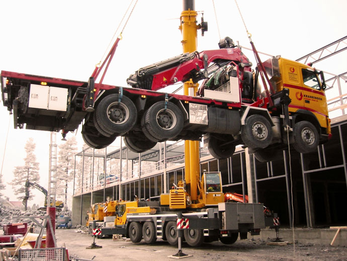 Грузовик Volvo, оснащенный краном-манипулятором HMFOdinдолжен был на протяжении 3 недель работать на 2-м этажев Норвегии.