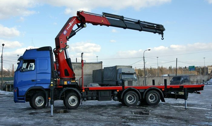 Когда кран-манипулятор HMFс подрамником и платформой были установлены на новом Volvo FH 480 8x4, то в результате получилось