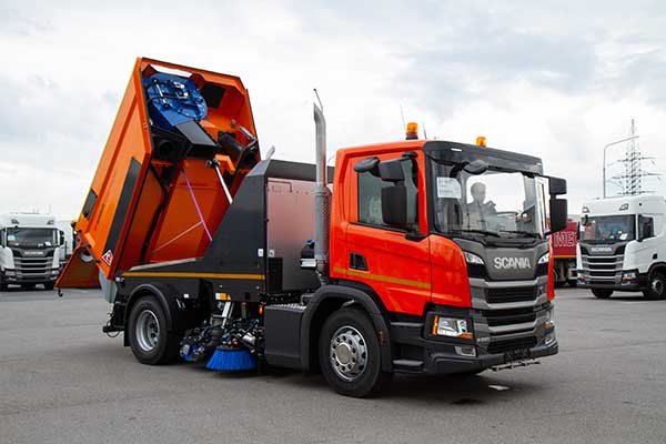 Надстройка представляет собой кузов-бункер с возможностью задней выгрузки, в нем имеется вспомогательный двигатель Deutz TD 2.9, приводящий в движение всасывающее устройство и подметальный узел с пятью щетками. Причем боковая щетка и насадка пылесоса не толкающего, а тянущего типа, что позволяет качественно очищать дорогу даже при наличии выбоин и других препятствий.